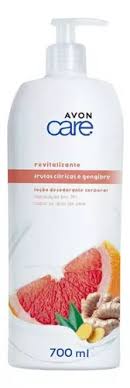 Avon Care Frutas Cítricas y Jengibre la loción corporal revitalizante con frutas cítricas y jengibre se desarrolló para nutrir e intensificar el nivel de humedad de la piel. Formulada con extractos de jengibre y pomelo, potentes ingredientes enriquecidos con vitamina E, un antioxidante, ayuda a que la piel luzca y se sienta saludable.